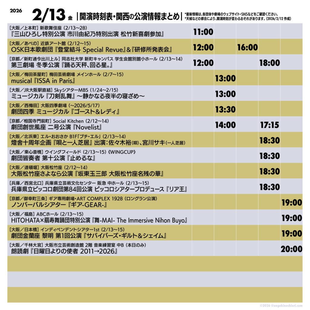 ▼各公演の最新情報はコチラからどうぞ